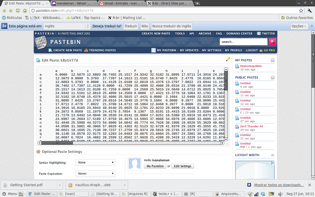 a <- read.table("http://pastebin.com/raw.php?i=kByUsY7d", header = T, sep = "\t", row.names = 1) head(a) 2011/6/27 Gustavo Henrique de Carvalho <gustavo.bio@gmail.com>: