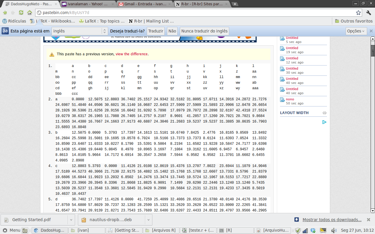 Bom dia pessoal! Desde já agradeço a atenção de todos. Daniel, não deu certo com o dropbox. Fiz o meu cadastro, o download, criei a pasta, no entanto, quando clico com o mouse no botão direito em cima da pasta ou do arquivo txt, não aparece as opções que vc falou. Já procurei em tudo qualquer barra de ferramentas e não entrei nada que me gerasse um link. Gustavo, deu quase certo. O problema é que quando submeto o arquivo, ele modifica o arquivo. Veja as figuras em anexo antes de submeter o arquivo e depois de submetido. Gostaria que o arquivo ficasse do jeito que foi colado. Se puder me ajudar, fico grato. Quero aprender isso para poder ajudar o pessoal aqui do grupo mesmo, para que os códigos sejam mais otimizados, sem precisar fazer o downloado do arquivo. Obrigado a todos! Allaman (S,f,P) M.Sc Ivan Bezerra Allaman Zootecnista Doutorando em Produção Animal/Aquicultura - UFLA email e msn - ivanalaman@yahoo.com.br Tel: (35)3826-6608/9900-2924