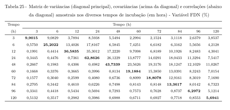 Oi tenta usar esses dois pacote e o comando cov require(mvnormtest) require(mvsf) dados <- read.table("campanha.txt", header = T) ## lendo um conjunto de dados em txt ## dados attach(dados) S <- cov(dados,dados) #matriz de variancia e covariancia S Att. Edilza ________________________________ De: R-br <r-br-bounces@listas.c3sl.ufpr.br> em nome de Fernando Souza via R-br <r-br@listas.c3sl.ufpr.br> Enviado: quarta-feira, 13 de setembro de 2017 18:02 Para: r-br@listas.c3sl.ufpr.br Assunto: [R-br] Modelo Misto - Matrix variancia covariancia [Imagem inline 1] Caros amigos, Como posso obter uma tabela semelhante. Estou analizando um modelo não linear misto (Gompertz) da forma Peso~SEMANA GALINHA<-structure(list(ID = structure(c(128L, 48L, 109L, 52L, 42L, 16L, 210L, 37L, 281L, 96L, 255L, 1L, 189L, 323L, 77L, 184L, 66L, 293L, 268L, 205L, 41L, 43L, 2L, 34L, 85L, 193L, 63L, 55L, 131L, 54L, 67L, 178L, 103L, 93L, 56L, 79L, 133L, 80L, 264L, 161L, 114L, 288L, 28L, 113L, 88L, 97L, 160L, 68L, 58L, 246L, 25L, 141L, 94L, 150L, 284L, 60L, 278L, 26L, 29L, 72L, 61L, 49L, 40L, 287L, 98L, 75L, 136L, 45L, 144L, 5L, 11L, 124L, 233L, 273L, 3L, 125L, 152L, 137L, 71L, 46L, 27L, 107L, 59L, 92L, 44L, 51L, 157L, 89L, 134L, 126L, 84L, 82L, 145L, 53L, 111L, 214L, 153L, 74L, 99L, 257L, 306L, 105L, 108L, 116L, 277L, 143L, 230L, 64L, 171L, 122L, 91L, 282L, 135L, 203L, 30L, 147L, 156L, 155L, 35L, 76L, 23L, 185L, 262L, 247L, 123L, 227L, 258L, 238L, 223L, 73L, 130L, 81L, 154L, 104L, 291L, 216L, 112L, 333L, 165L, 212L, 308L, 201L, 313L, 324L, 148L, 321L, 170L, 211L, 102L, 198L, 286L, 229L, 249L, 167L, 159L, 191L, 283L, 320L, 305L, 317L, 355L, 330L, 182L, 221L, 231L, 241L, 166L, 234L, 142L, 199L, 217L, 117L, 121L, 132L, 174L, 266L, 215L, 325L, 65L, 301L, 106L, 179L, 50L, 33L, 115L, 8L, 304L, 345L, 363L, 169L, 36L, 292L, 110L, 47L, 192L, 95L, 101L, 69L, 202L, 146L, 200L, 173L, 100L, 39L, 302L, 336L, 290L, 332L, 86L, 127L, 197L, 310L, 242L, 118L, 90L, 120L, 13L, 285L, 183L, 188L, 158L, 252L, 164L, 177L, 190L, 186L, 237L, 62L, 78L, 240L, 250L, 196L, 228L, 149L, 87L, 243L, 24L, 14L, 204L, 140L, 15L, 244L, 339L, 180L, 303L, 195L, 265L, 289L, 269L, 272L, 350L, 162L, 254L, 344L, 139L, 151L, 226L, 270L, 280L, 327L, 57L, 361L, 176L, 251L, 235L, 351L, 119L, 163L, 206L, 271L, 365L, 314L, 329L, 181L, 295L, 239L, 316L, 70L, 207L, 362L, 10L, 208L, 343L, 342L, 219L, 253L, 298L, 349L, 299L, 222L, 307L, 245L, 334L, 248L, 315L, 366L, 17L, 296L, 369L, 341L, 260L, 309L, 297L, 328L, 261L, 83L, 367L, 38L, 318L, 259L, 358L, 346L, 20L, 331L, 348L, 256L, 275L, 168L, 218L, 194L, 232L, 22L, 368L, 209L, 357L, 267L, 19L, 129L, 326L, 236L, 353L, 359L, 279L, 352L, 360L, 6L, 9L, 340L, 31L, 18L, 274L, 322L, 335L, 300L, 370L, 225L, 364L, 311L, 312L, 337L, 338L, 356L, 354L, 213L, 21L, 220L, 294L, 224L, 319L, 276L, 347L, 263L, 175L, 172L, 138L, 187L, 7L, 4L, 32L, 12L, 128L, 48L, 109L, 52L, 42L, 16L, 210L, 37L, 281L, 96L, 255L, 1L, 189L, 323L, 77L, 184L, 66L, 293L, 268L, 205L, 41L, 43L, 2L, 34L, 85L, 193L, 63L, 55L, 131L, 54L, 67L, 178L, 103L, 93L, 56L, 79L, 133L, 80L, 264L, 161L, 114L, 288L, 28L, 113L, 88L, 97L, 160L, 68L, 58L, 246L, 25L, 141L, 94L, 150L, 284L, 60L, 278L, 26L, 29L, 72L, 61L, 49L, 40L, 287L, 98L, 75L, 136L, 45L, 144L, 5L, 11L, 124L, 233L, 273L, 3L, 125L, 152L, 137L, 71L, 46L, 27L, 107L, 59L, 92L, 44L, 51L, 157L, 89L, 134L, 126L, 84L, 82L, 145L, 53L, 111L, 214L, 153L, 74L, 99L, 257L, 306L, 105L, 108L, 116L, 277L, 143L, 230L, 64L, 171L, 122L, 91L, 282L, 135L, 203L, 30L, 147L, 156L, 155L, 35L, 76L, 23L, 185L, 262L, 247L, 123L, 227L, 258L, 238L, 223L, 73L, 130L, 81L, 154L, 104L, 291L, 216L, 112L, 333L, 165L, 212L, 308L, 201L, 313L, 324L, 148L, 321L, 170L, 211L, 102L, 198L, 286L, 229L, 249L, 167L, 159L, 191L, 283L, 320L, 305L, 317L, 355L, 330L, 182L, 221L, 231L, 241L, 166L, 234L, 142L, 199L, 217L, 117L, 121L, 132L, 174L, 266L, 215L, 325L, 65L, 301L, 106L, 179L, 50L, 33L, 115L, 8L, 304L, 345L, 363L, 169L, 36L, 292L, 110L, 47L, 192L, 95L, 101L, 69L, 202L, 146L, 200L, 173L, 100L, 39L, 302L, 336L, 290L, 332L, 86L, 127L, 197L, 310L, 242L, 118L, 90L, 120L, 13L, 285L, 183L, 188L, 158L, 252L, 164L, 177L, 190L, 186L, 237L, 62L, 78L, 240L, 250L, 196L, 228L, 149L, 87L, 243L, 24L, 14L, 204L, 140L, 15L, 244L, 339L, 180L, 303L, 195L, 265L, 289L, 269L, 272L, 350L, 162L, 254L, 344L, 139L, 151L, 226L, 270L, 280L, 327L, 57L, 361L, 176L, 251L, 235L, 351L, 119L, 163L, 206L, 271L, 365L, 314L, 329L, 181L, 295L, 239L, 316L, 70L, 207L, 362L, 10L, 208L, 343L, 342L, 219L, 253L, 298L, 349L, 299L, 222L, 307L, 245L, 334L, 248L, 315L, 366L, 17L, 296L, 369L, 341L, 260L, 309L, 297L, 328L, 261L, 83L, 367L, 38L, 318L, 259L, 358L, 346L, 20L, 331L, 348L, 256L, 275L, 168L, 218L, 194L, 232L, 22L, 368L, 209L, 357L, 267L, 19L, 129L, 326L, 236L, 353L, 359L, 279L, 352L, 360L, 6L, 9L, 340L, 31L, 18L, 274L, 322L, 335L, 300L, 370L, 225L, 364L, 311L, 312L, 337L, 338L, 356L, 354L, 213L, 21L, 220L, 294L, 224L, 319L, 276L, 347L, 263L, 175L, 172L, 138L, 187L, 7L, 4L, 32L, 12L, 128L, 48L, 109L, 52L, 42L, 16L, 210L, 37L, 281L, 96L, 255L, 1L, 189L, 323L, 77L, 184L, 66L, 293L, 268L, 205L, 41L, 43L, 2L, 34L, 85L, 193L, 63L, 55L, 131L, 54L, 67L, 178L, 103L, 93L, 56L, 79L, 133L, 80L, 264L, 161L, 114L, 288L, 28L, 113L, 88L, 97L, 160L, 68L, 58L, 246L, 25L, 141L, 94L, 150L, 284L, 60L, 278L, 26L, 29L, 72L, 61L, 49L, 40L, 287L, 98L, 75L, 136L, 45L, 144L, 5L, 11L, 124L, 233L, 273L, 3L, 125L, 152L, 137L, 71L, 46L, 27L, 107L, 59L, 92L, 44L, 51L, 157L, 89L, 134L, 126L, 84L, 82L, 145L, 53L, 111L, 214L, 153L, 74L, 99L, 257L, 306L, 105L, 108L, 116L, 277L, 143L, 230L, 64L, 171L, 122L, 91L, 282L, 135L, 203L, 30L, 147L, 156L, 155L, 35L, 76L, 23L, 185L, 262L, 247L, 123L, 227L, 258L, 238L, 223L, 73L, 130L, 81L, 154L, 104L, 291L, 216L, 112L, 333L, 165L, 212L, 308L, 201L, 313L, 324L, 148L, 321L, 170L, 211L, 102L, 198L, 286L, 229L, 249L, 167L, 159L, 191L, 283L, 320L, 305L, 317L, 355L, 330L, 182L, 221L, 231L, 241L, 166L, 234L, 142L, 199L, 217L, 117L, 121L, 132L, 174L, 266L, 215L, 325L, 65L, 301L, 106L, 179L, 50L, 33L, 115L, 8L,